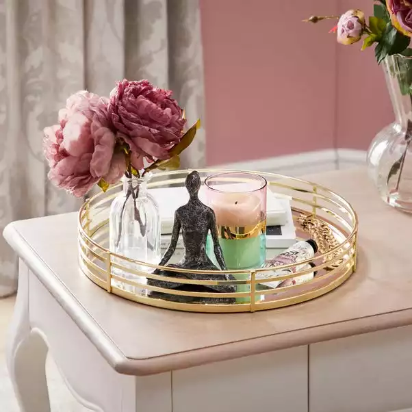 Beautifully designed in a clean and simplistic styling, this exquisite tray from 5A features a circular shape with a gold and mirrored finish.