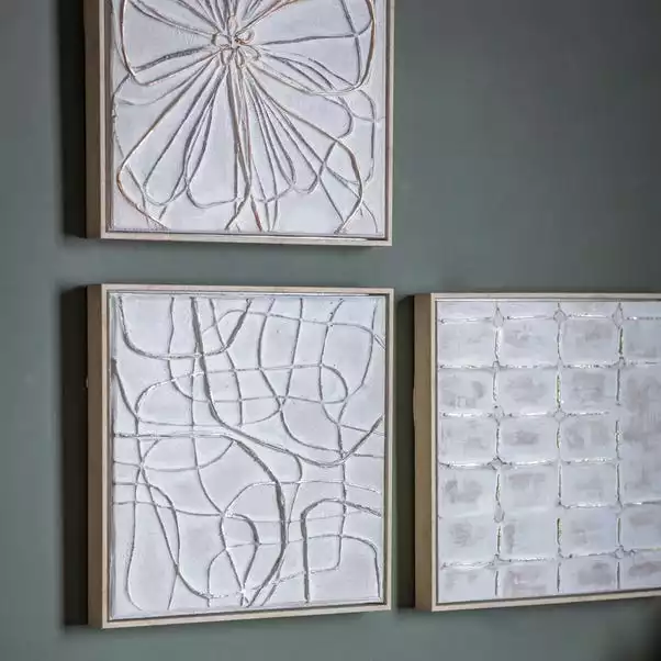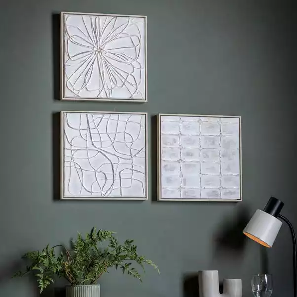 Bring light, subtle decoration to your walls with the Set of 3 Montro Textured Wall Art, featuring 3 textured patterned plaques in a compact square shaped and bordered with a natural wood effect frame.