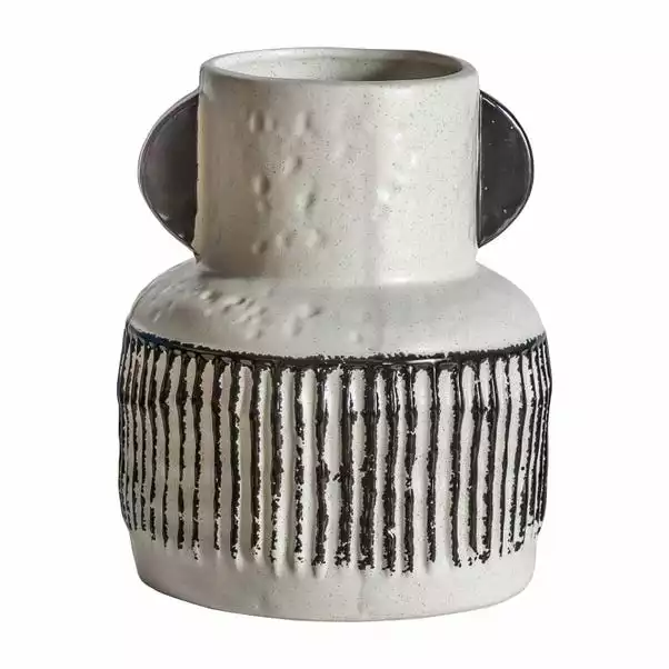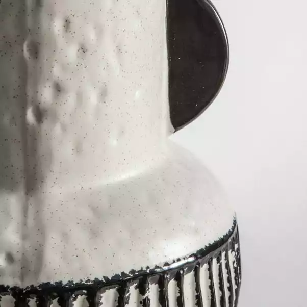 Featuring a monochrome colourway, the Throwley Vase will make a striking decorative piece for any room in your home. Beautifully made from stoneware, this unique shape vase features a ribbed design with a dark glaze. Perfect for displaying artificial stems and can also be paired with the larger Throwley vase to create an eye-catching display in your home.