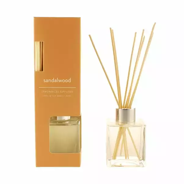 Add a sandalwood scent to your home with our 90ml sandalwood diffuser with 8 reeds. With a comforting and warm scent of rich sandalwood blends with soft amber and creamy vanilla to create a smooth woody fragrance within a 90ml glass bottle. This diffuser features a chic design that is suitable for any space in your home.