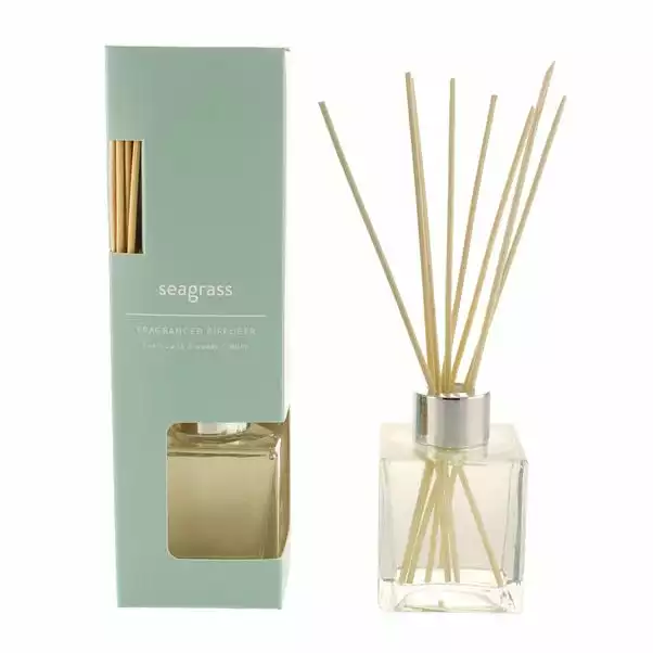 Add a seagrass scent to your home with our 90ml seagrass diffuser with 8 reeds. With aromatic Sparkling citrus notes adds lift to a refreshing oceanic heart infused with soft sandalwood and vanilla on the base within a 90ml glass bottle. This diffuser features a chic design that is suitable for any space in your home.