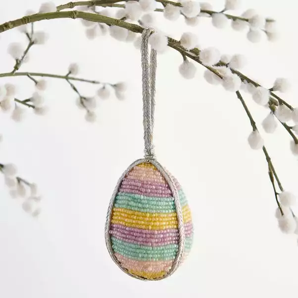 Be the first to review “Dunelm Beaded Striped Rainbow Hanging Egg Decoration” Cancel reply