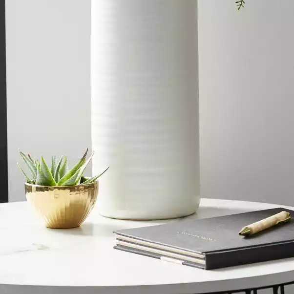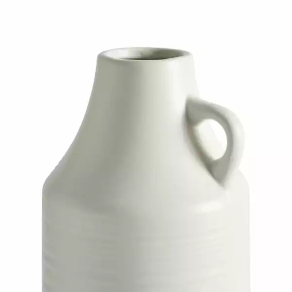 Add an elegant touch to your home with this beautiful Ceramic White Vase, Easy to maintain with just a wipe, this vase features a contemporary design making it the ideal ornament for your home. This decorative piece has a white glazed finish with a ripple design that will complement an array of home decors beautifully, making it the perfect addition to any room of the house.