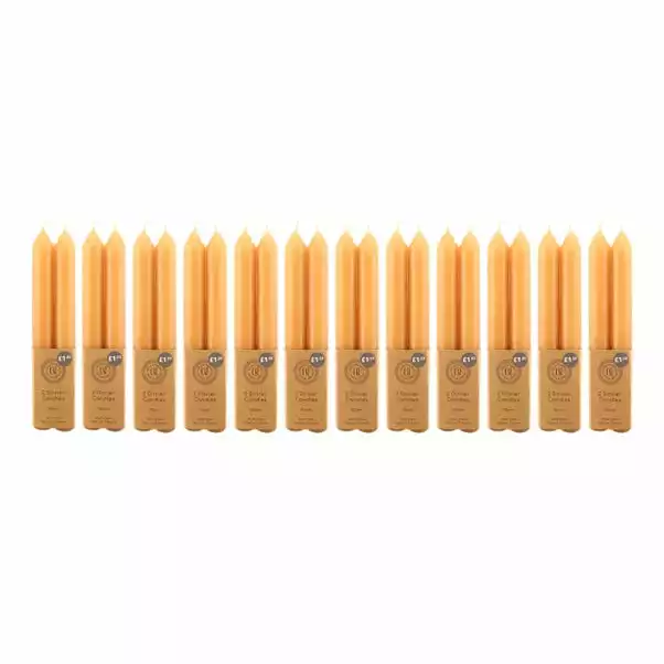 Looking fabulous and chic, these candles will add a stylish touch to your dinner table, with a modern colourway that will complement an array of home decors. This set of 12 pairs of old gold dinner candles has a burn time of up to 7 hours!