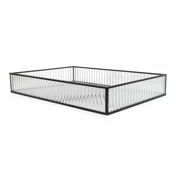 Perfect for adding a touch of stylish decor to any home, this stunning glass tray would make a gorgeous decorative storage solution for your room or an elegant gift for a loved one. Complete with transparent ribbed glass and a black coloured metal outline frame.