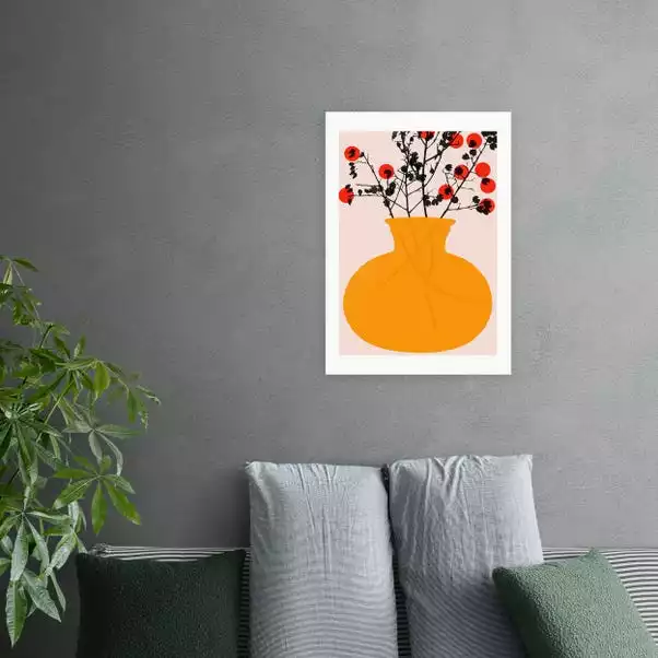 Featuring a honey-coloured potted plant with a pop of red berries, this artwork by Garima Dhawan would sit perfectly in a living space or hallway. Made using a Giclee printing process to prevent fading, this print will stay vibrant for years to come and Each design is available in four print sizes and a variety of frame options, including unframed, so you can display your artwork however you wish.