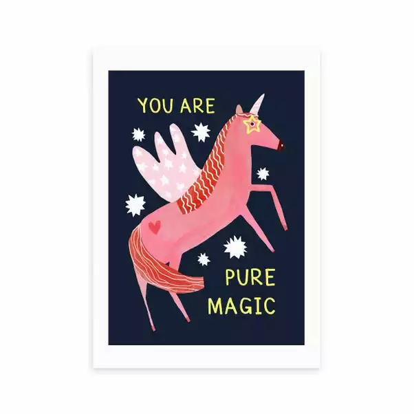 Fill your space with magical unicorn vibes with this superb artwork by Darcie Olley. Perfect for bringing a sprinkle of pink colour and words of encouragement, this print is made to last as it uses a Giclee printing process to stay vibrant and prevent fading over years. Each design is available in four print sizes and a variety of frame options, including unframed, so you can display your artwork however you wish.