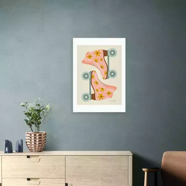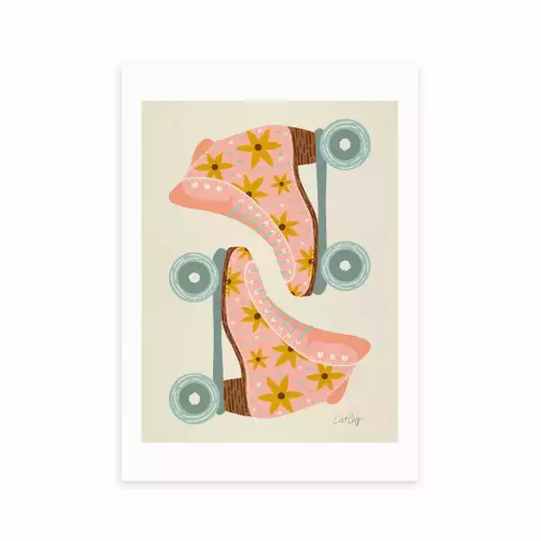 Hop onto the funky, roller-skate vibe with this awesome print by Cat Coquillette. Featuring blush and mint tones, this print is made to last as it uses a Giclee printing process to stay vibrant and prevent fading over years. Each design is available in four print sizes and a variety of frame options, including unframed, so you can display your artwork however you wish.