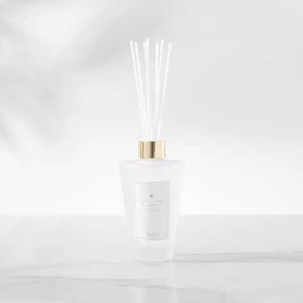 This modern linen fragrance opens with fresh citrus and leads to a white floral heart of lily and jasmine. Bamboo accords are complemented with white musk, vanilla & oak moss. The diffuser liquid comes within a frosted glass vessel with a gold trim, perfect for displaying with your home.