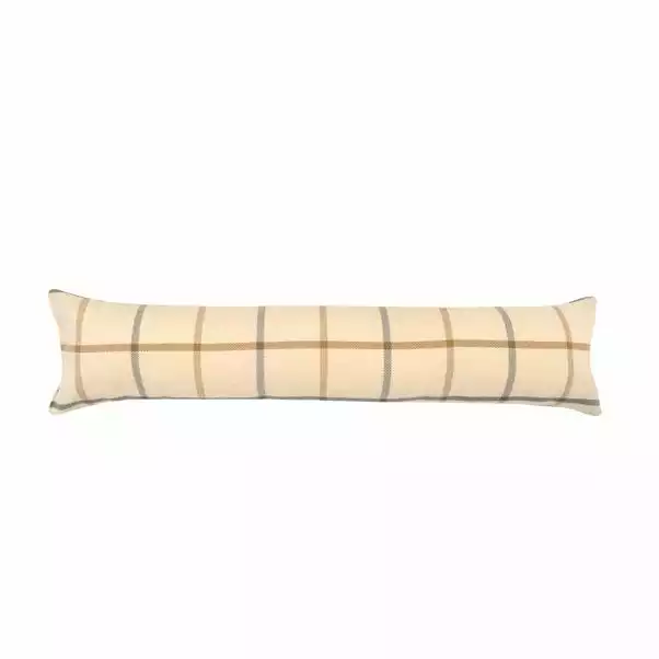 Styled in a warm natural colourway with a timeless check pattern, this draught excluder is perfect to suit a variety of decors. This draught excluder is designed to fit most door sizes and prevents cold draughts from entering beneath your door in colder seasons. Easy to remove when not in use, this draught excluder is crafted from durable polyester for added longevity and is perfect for adding a touch of style to your doorways.