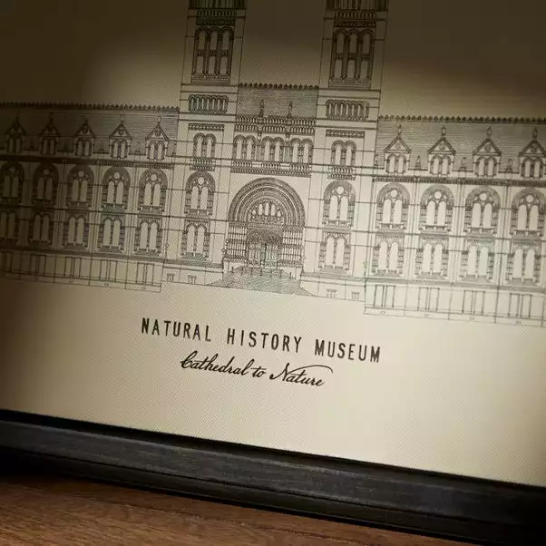 A beautiful blueprint design, provided by the Museum, sits upon this elegant canvas. The blueprint is an original drawing of ‘The Cathedral to Nature’ by the architect Alfred Waterhouse, signed 9th Feb 1872. This canvas is bordered by a frame made from responsibly sourced, FSC-certified timber. By choosing this product, you are supporting responsible management of the world’s forests.