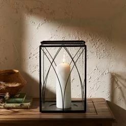The Cathedral to Nature Lantern is perfect for adding ambience and interest to any room in your home. Beautifully crafted from ceramic with a glazed finish. This lantern features a cut out window design that casts a lovely light when the candle is lit. Complete with a metal carry handle for easy hanging or displaying on a table top. This small lantern can also be paired with the small Cathedral to Nature Lantern to create a beautiful light display.