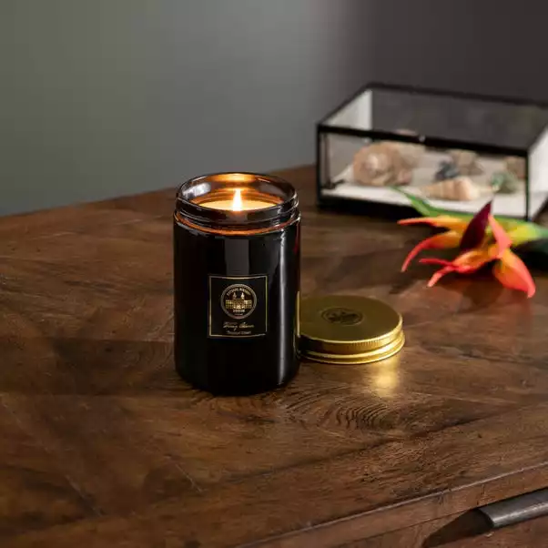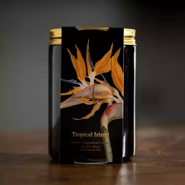 A lush and tropical scent enhanced with the sweetness of pear, passion flower and bergamot layered with orange flower, warm tonka bean and amber. The Tropical Paradise Candle lasts up to 65 hours and comes in an eye-catching black candle jar with screw top gold metal lid. Keep and re-use this glass vessel once the wax has melted.