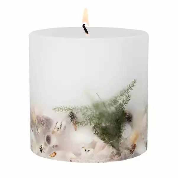 Experience refreshing scents around your home with the Ocean scented pillar candle. This uplifting fragrance can be enjoyed for 60 hours of burn time, and the spectacular look of imbedded shells in the wax structure creates the perfect decorative accessory or centrepiece for your table. Other home fragrances in the Ocean range are available to create a coordinated collection of home fragrances or gift to a loved one.
