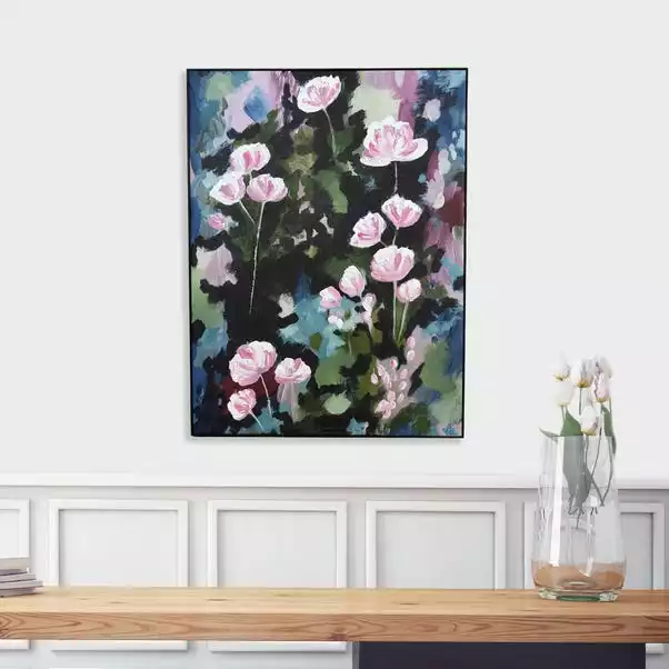 Your walls would look pretty in pink with this floral canvas designed by Susan Nethercote.